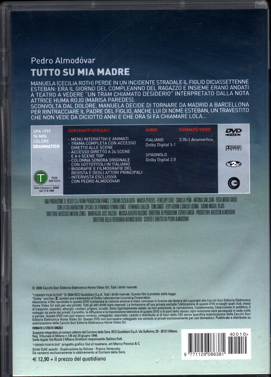 | Titolo: | Tutto su mia madre (Almodovar) – I Grandi Film in DVD – Versione da edicola – DVD in Italiano |