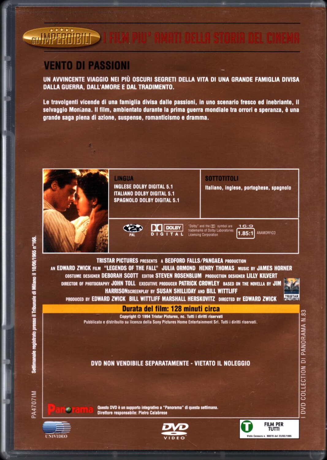 | Titolo: | Vento di passioni con Brad Pitt, Anthony Hopkins. DVD in Italiano. Versione da edicola |