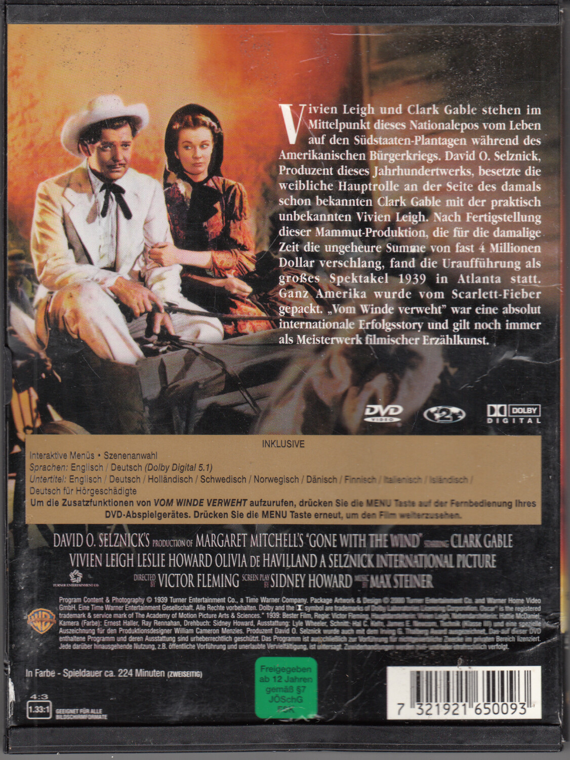 | Titolo: | Vom Winde Verweht con Clark Gable. DVD Edizione Germania PAL Regione 2, Lingua Tedesco. Custodia Snapper |