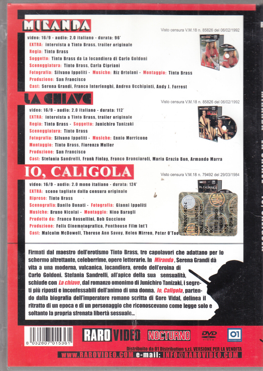 | Titolo: | Box Tinto Brass: Miranda – La Chiave – Io, Caligola DVD in Italiano |