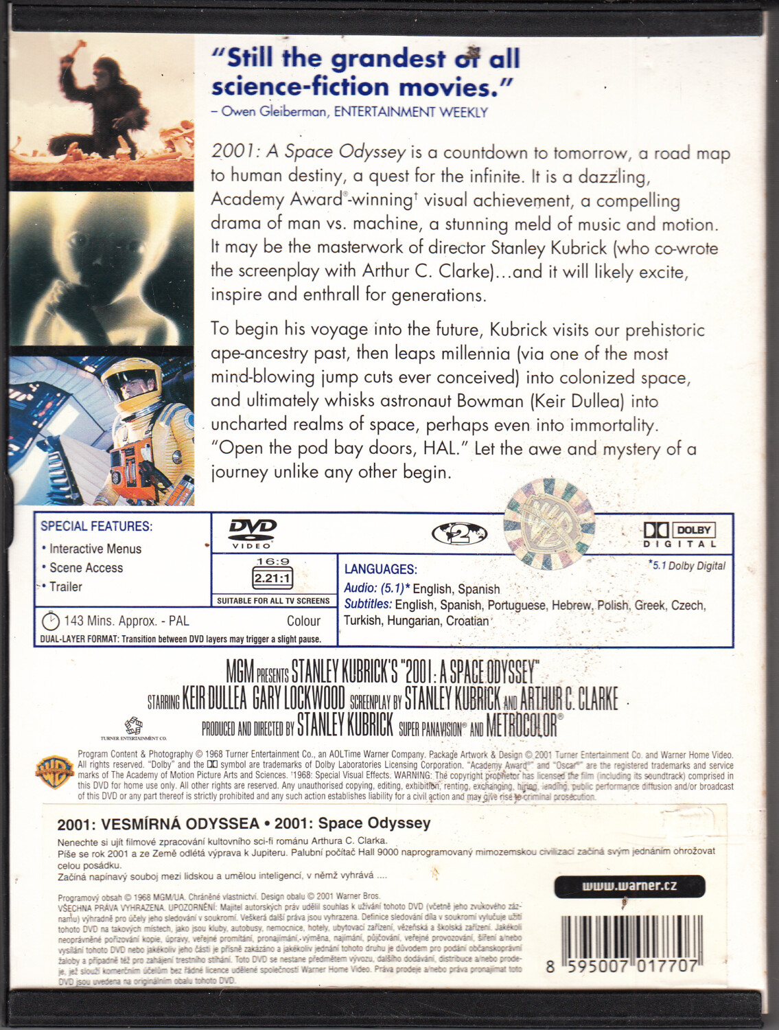 | Titolo: | 2001: A Space Odyssey. Stanley Kubrick Collection. DVD Edizione Regno Unito PAL Regione 2, Lingua Inglese. Custodia Snapper |