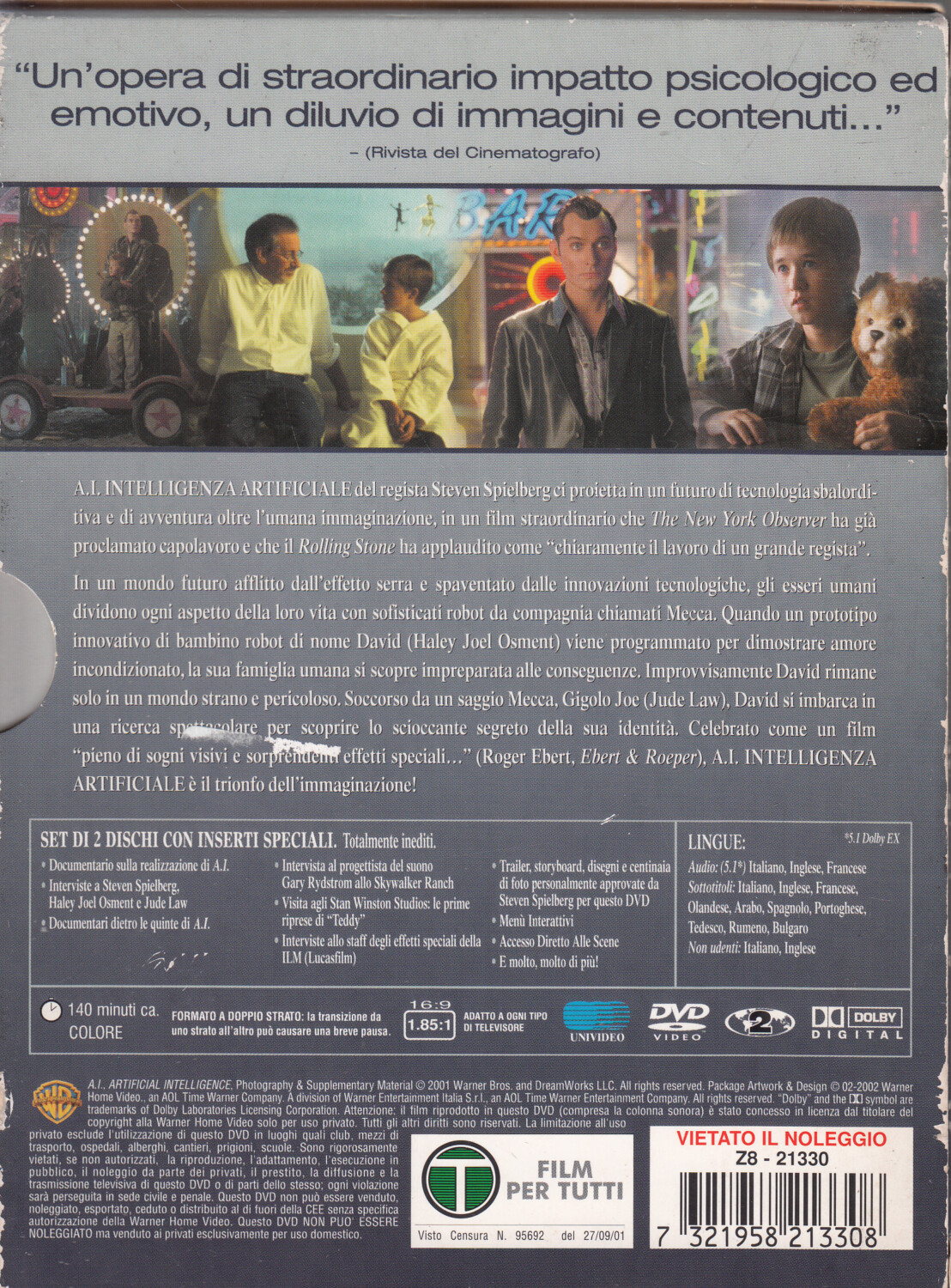 | Titolo: | A.I. Intelligenza artificiale (Edizione Speciale 2 DVD) – DVD in Italiano |