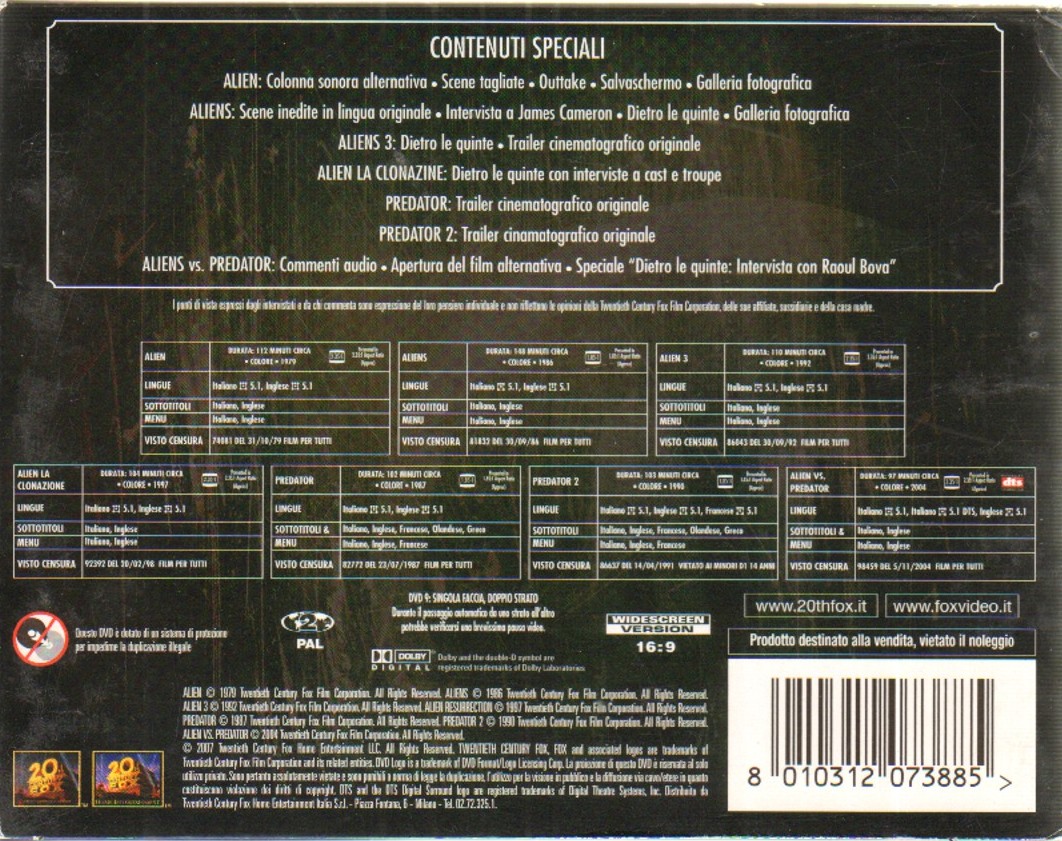 Alien – Predator. Annihilation Collection 8 film DVD in Italiano (Alien 1,2,3, La clonazione; Predator 1, 2; AVP 1, 2)