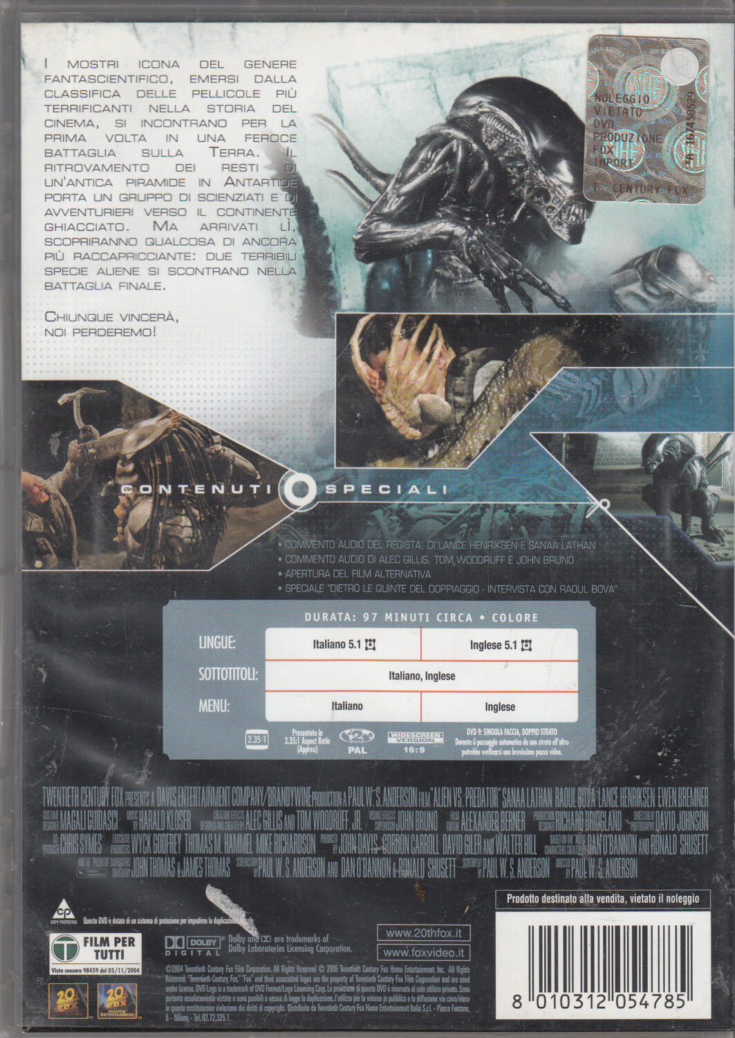 | Titolo: | Alien vs Predator un film di Paul W.S. Anderson. DVD in Italiano |