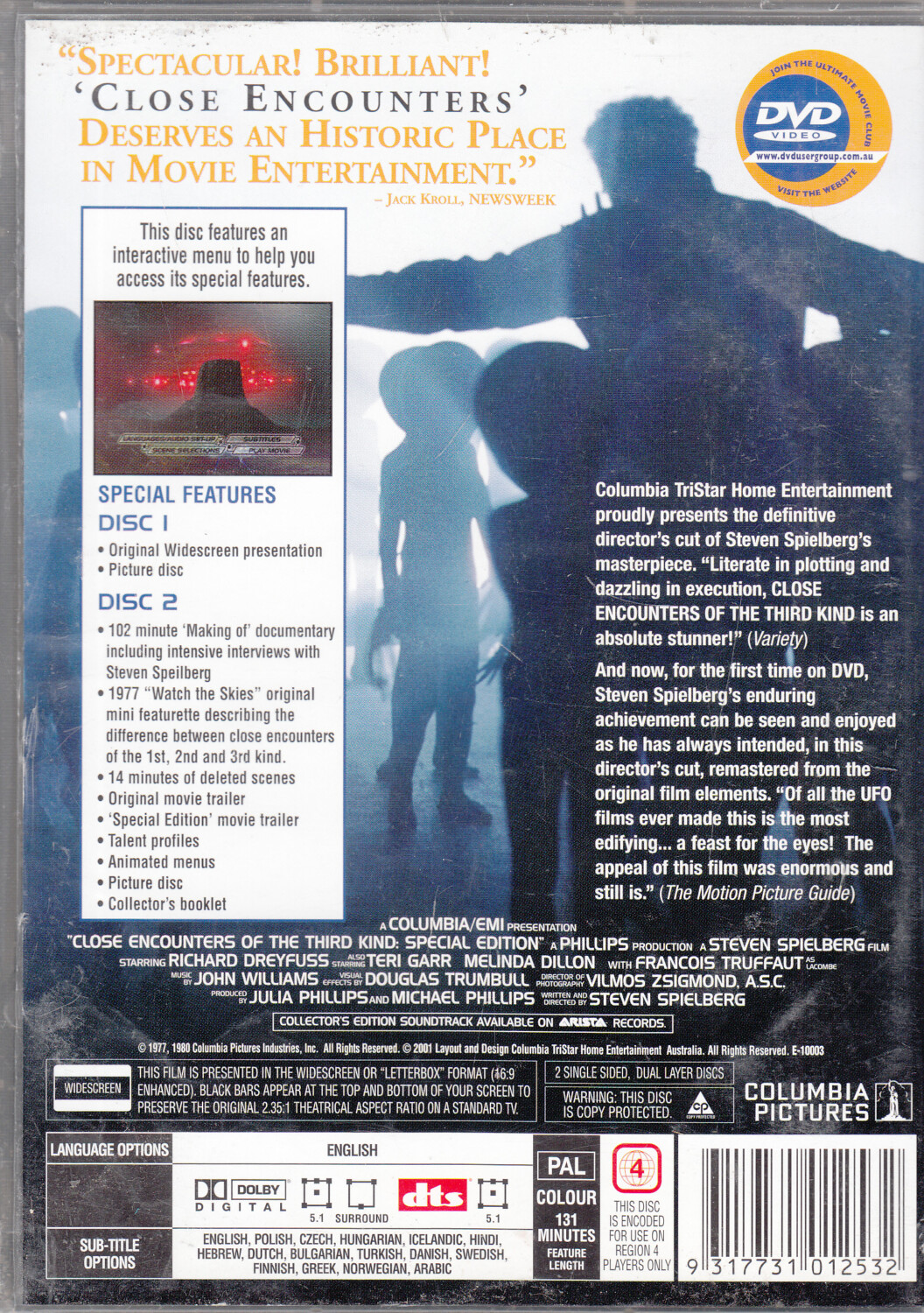 | Titolo: | Close Encounters of the Third kind. Collector’s Edition con n. 2 DVD Edizione Regno Unito PAL Regione 4, Lingua Inglese |