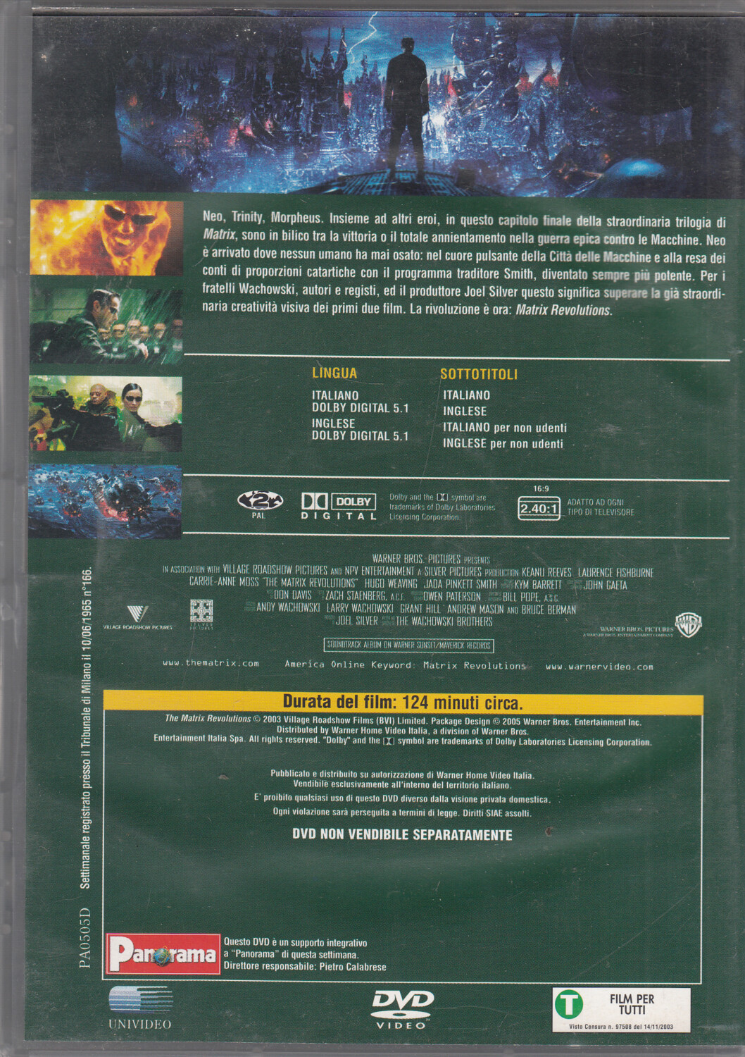 | Titolo: | Matrix Revolutions – DVD Prima Visione – Versione da edicola – DVD in Italiano |