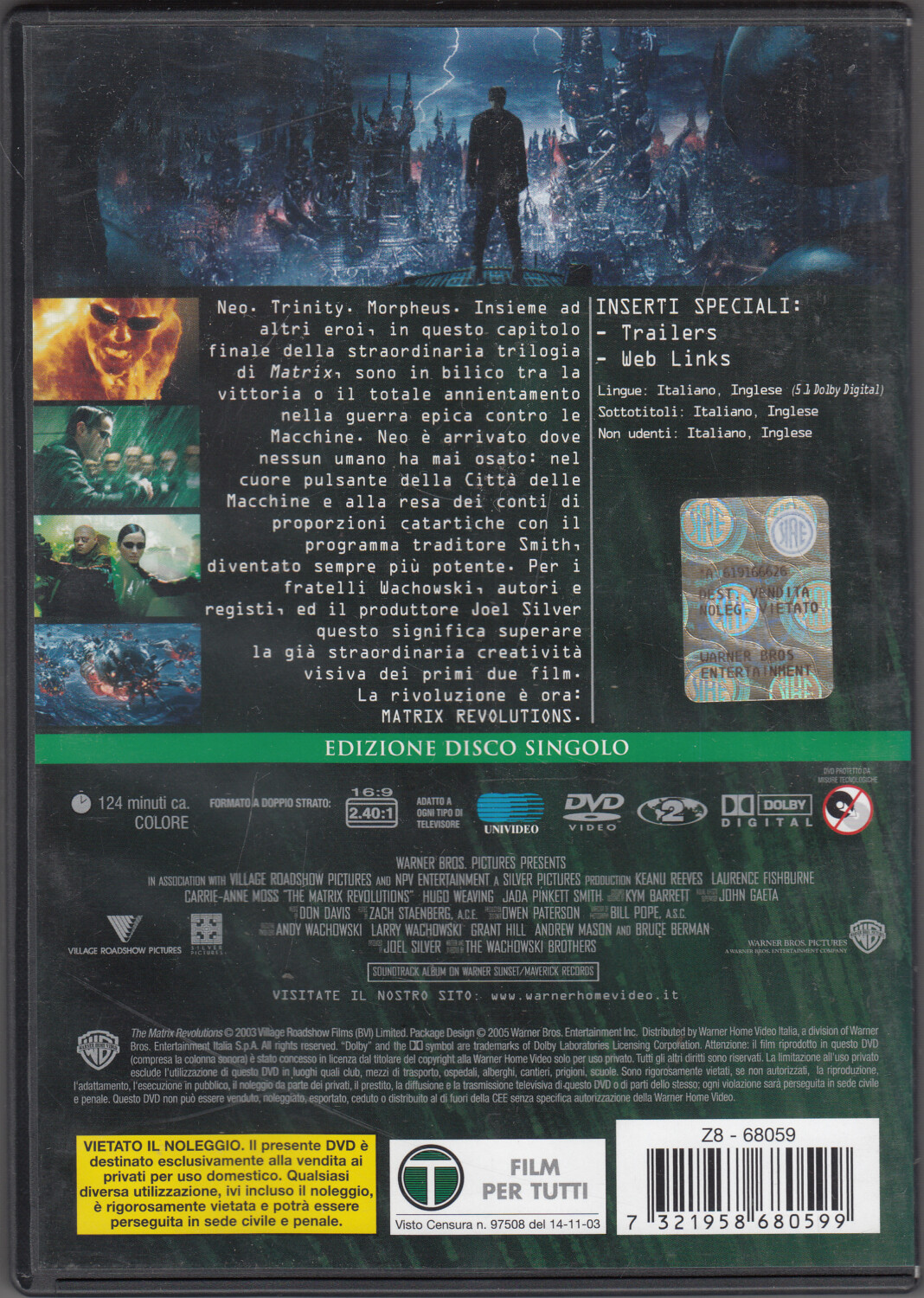 Matrix revolutions (Kenau Reeves). Edizione Disco Singolo. DVD in Italiano ed.