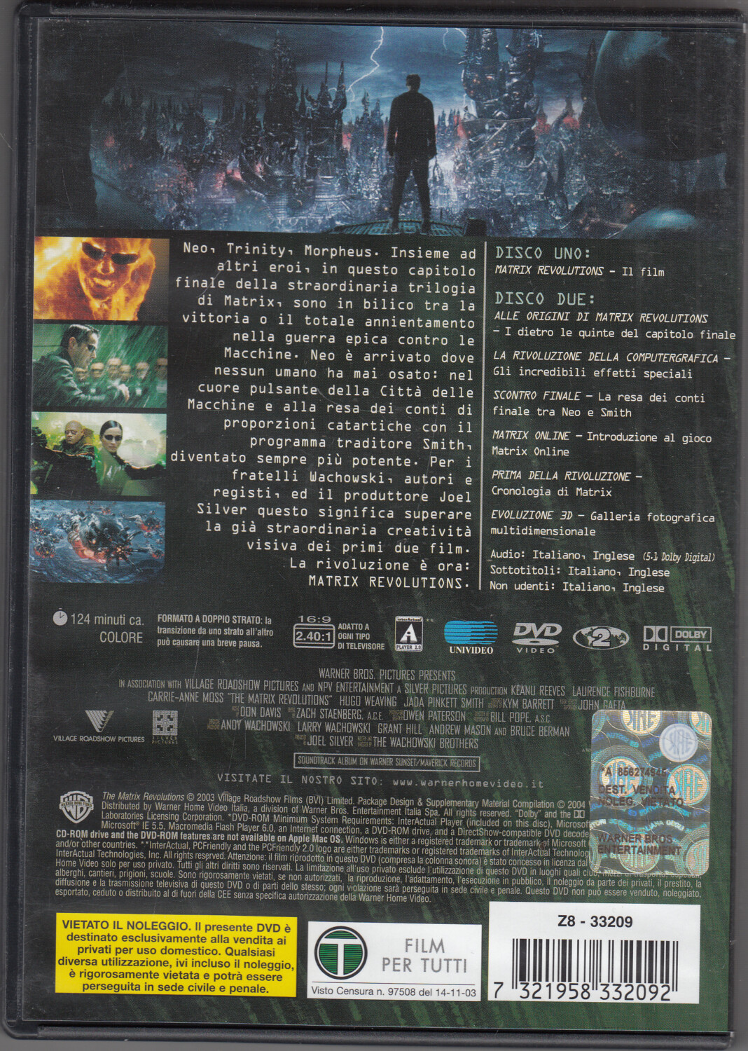 Matrix Revolutions Edizione Speciale 2 DVD in Italiano Kenau Reeves