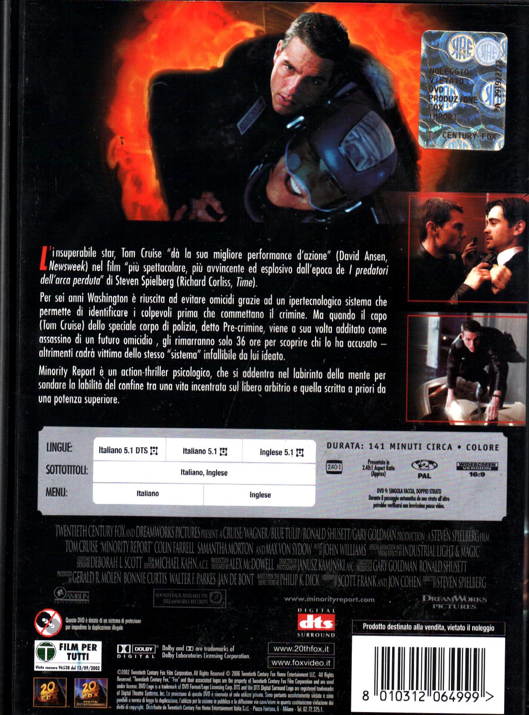 | Titolo: | Minority Report (Tom Cruise) – Disco Singolo – DVD in Italiano |