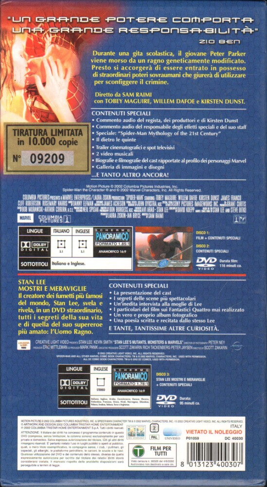 Spider-Man. Edizione speciale Tiratura Limitata numerata. n. 3 DVD Italiano