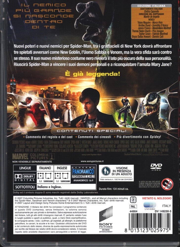 | Titolo: | Spider-Man Trilogia n. 3 DVD in Italiano con Cofanetto |