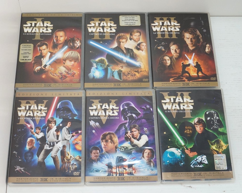 | Descrizione: | Titoli compresi: La minaccia fantasma (versione 2 dischi), L’attacco dei cloni (versione 2 dischi), La vendetta dei Sith (versione 2 dischi), Il ritorno dello Jedi (versione 1 disco), L’impero colpisce ancora (versione da edicola, 1 disco), Una nuova speranza (versione da edicola, 1 disco). |