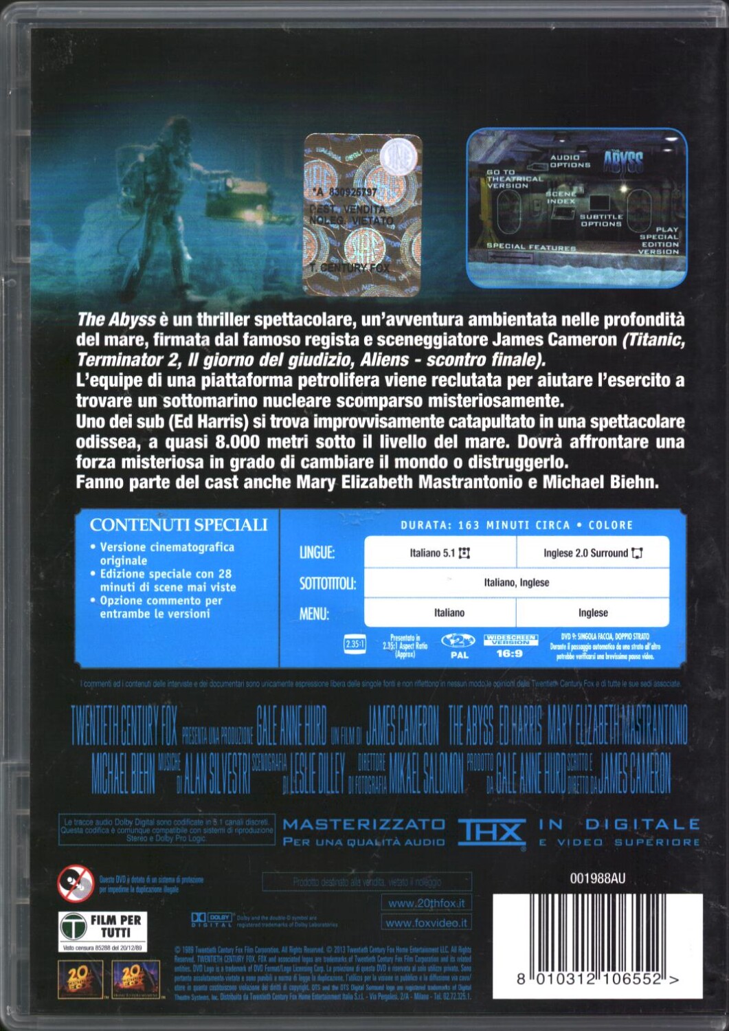 | Titolo: | The Abyss. Edizione speciale Disco singolo DVD in Italiano |