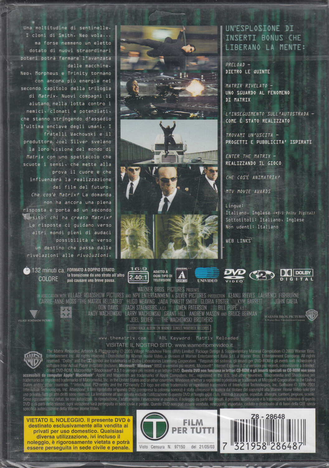 | Titolo: | The Matrix Reloaded (Keanu Reeves) – Edizione (2 DVD) – DVD in Italiano |
