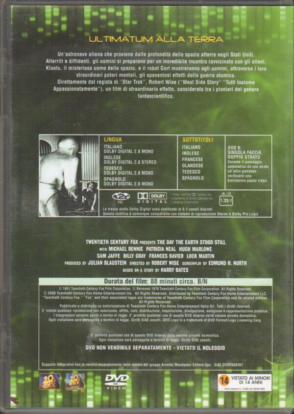 | Titolo: | Ultimatum alla Terra. (Versione 1951) Fantascienza Cult DVD in Italiano. Editoriale |
