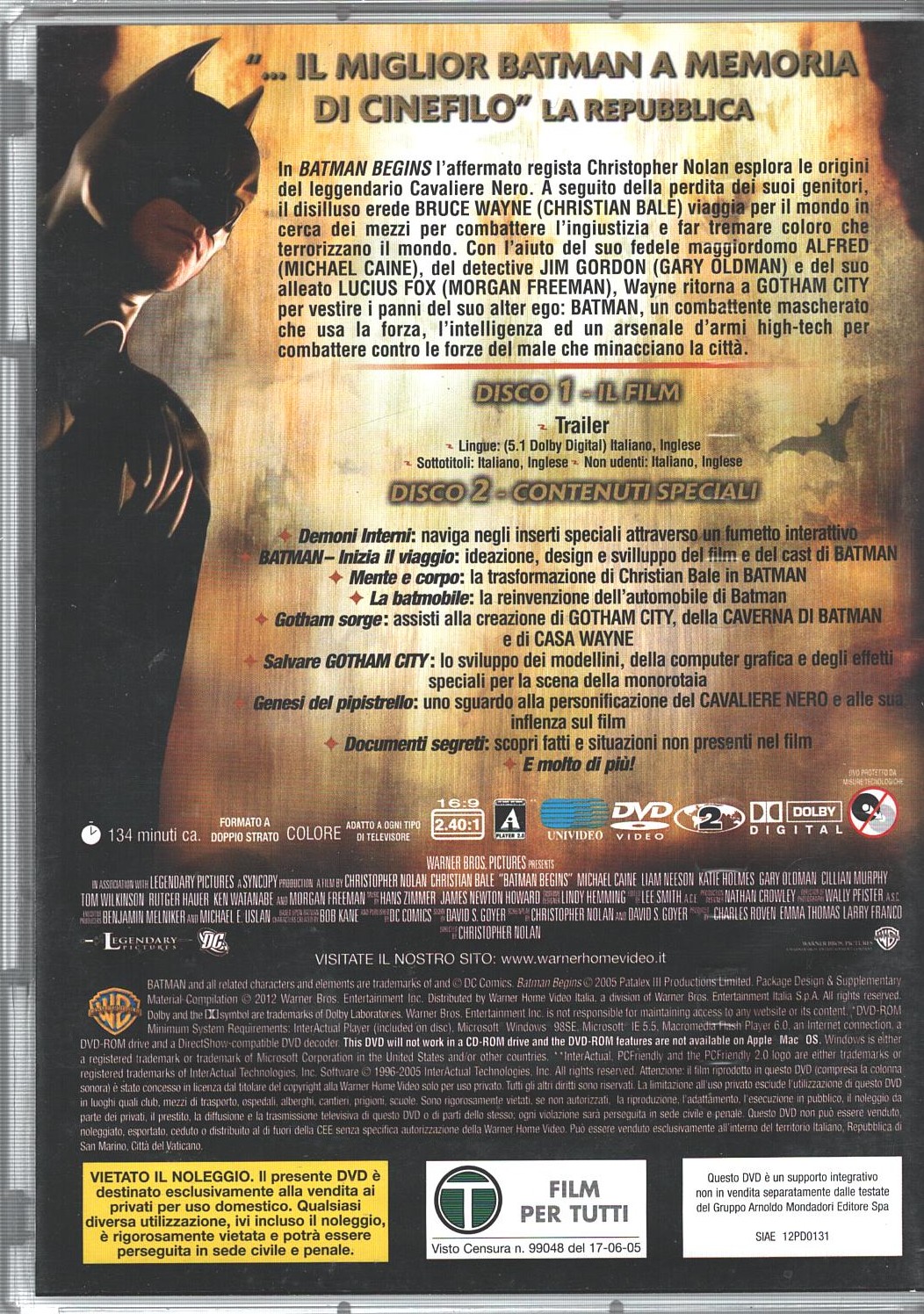 | Titolo: | Batman Begins. Edizione speciale (2 DVD). Versione da edicola. DVD in Italiano |