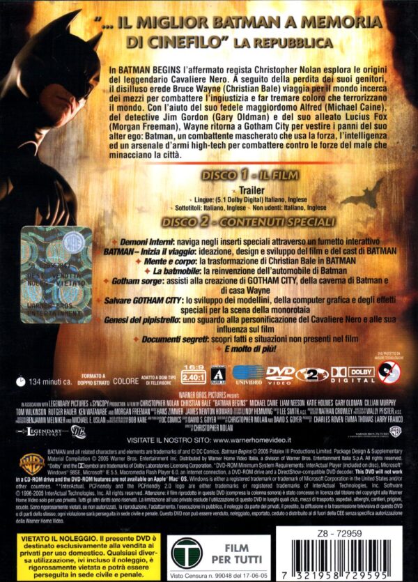 | Titolo: | Batman Begins. Edizione speciale (2 DVD). SENZA Slipcase Olografico. DVD in Italiano |