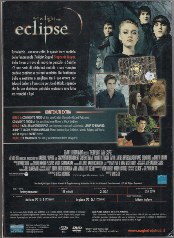 | Titolo: | Eclipse -The Twilight Saga – Limited Deluxe Edition (3 DVD) con Slipcase – DVD in Italiano |