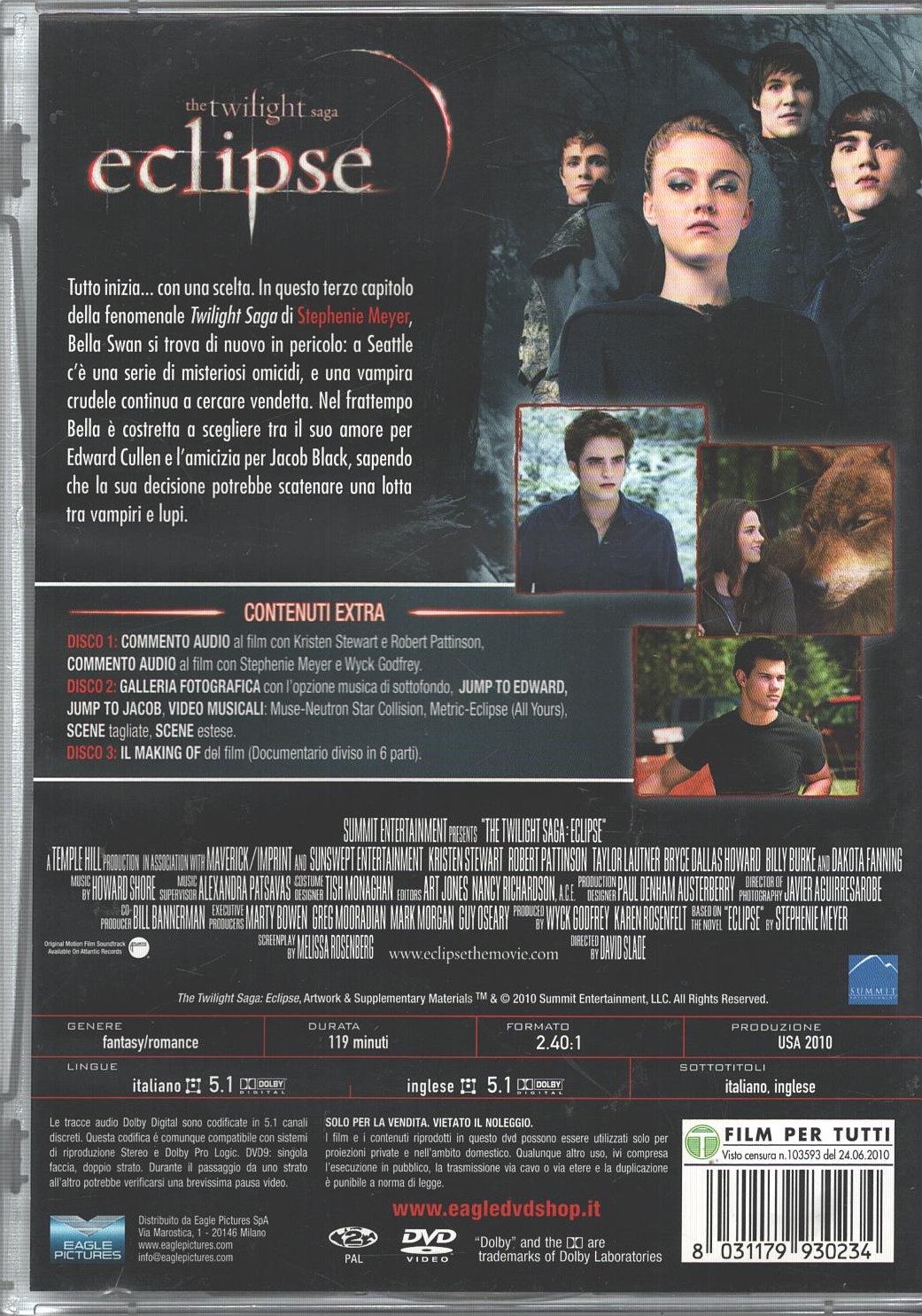| Titolo: | Eclipse -The Twilight Saga – Limited Deluxe Edition (3 DVD) SENZA Slipcase – DVD in Italiano |