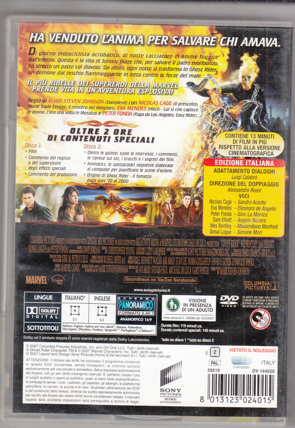| Titolo: | Ghost rider extended cut. Nicola Cage DVD in Italiano Nicola Cage |