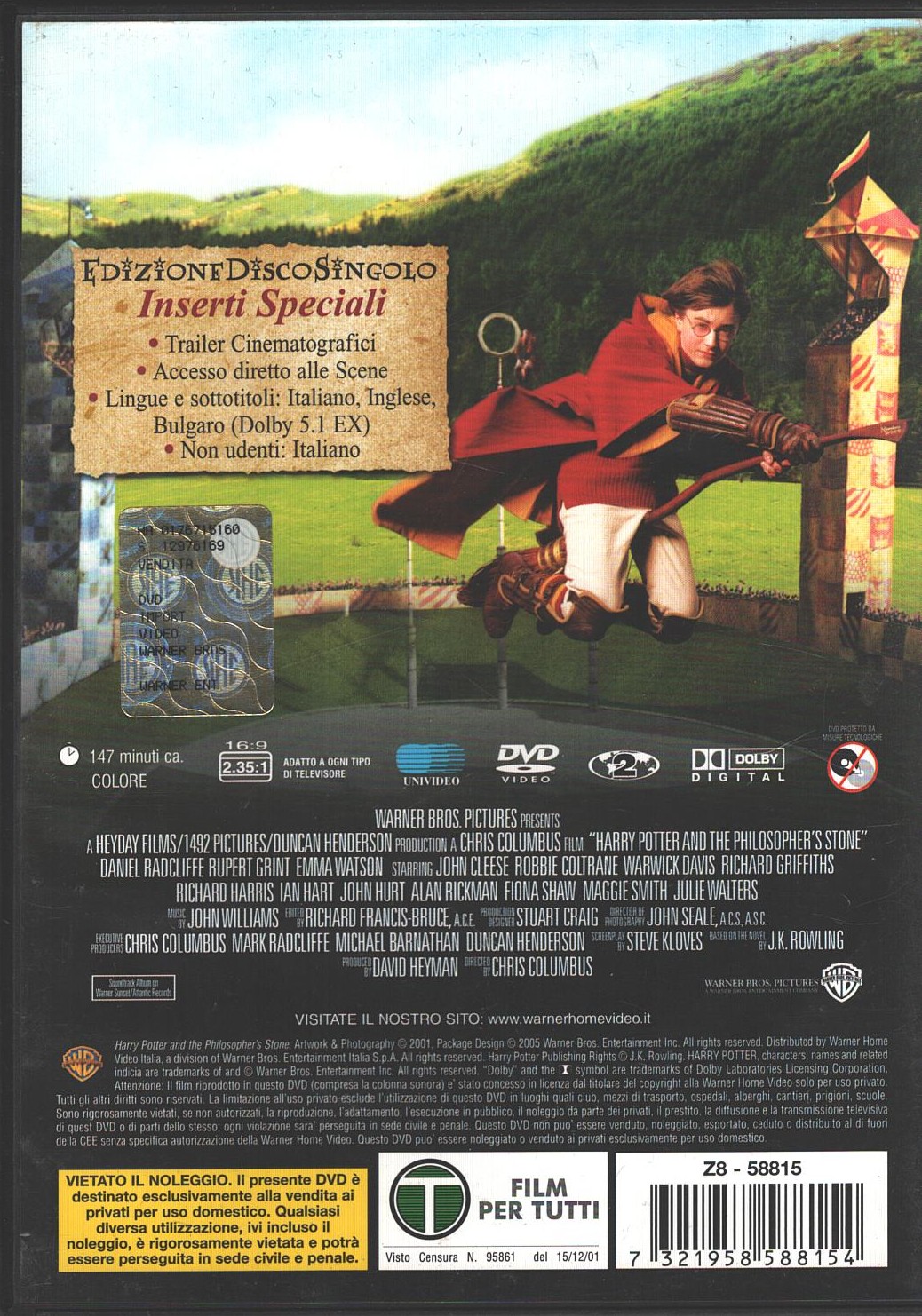 | Titolo: | Harry Potter e la pietra filosofale – Edizione disco Singolo – DVD in Italiano |