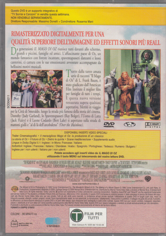 | Titolo: | Il Mago di Oz DVD in Italiano. Editoriale |
