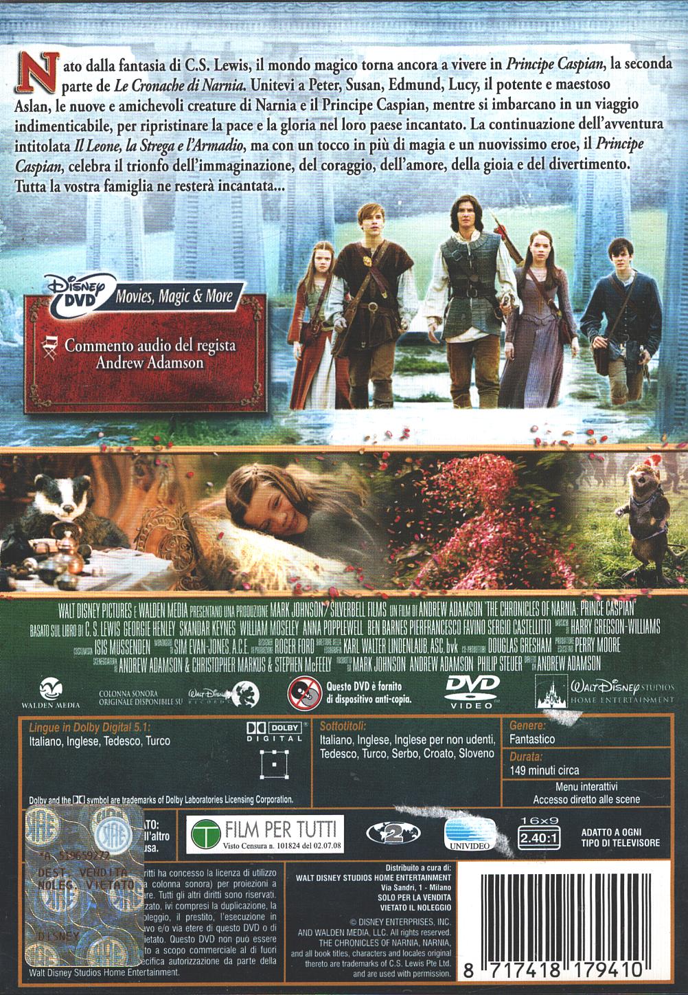 Le cronache di Narnia – Il principe Caspian (Walt Disney) DVD Senza Ologramma – DVD in Italiano ed.