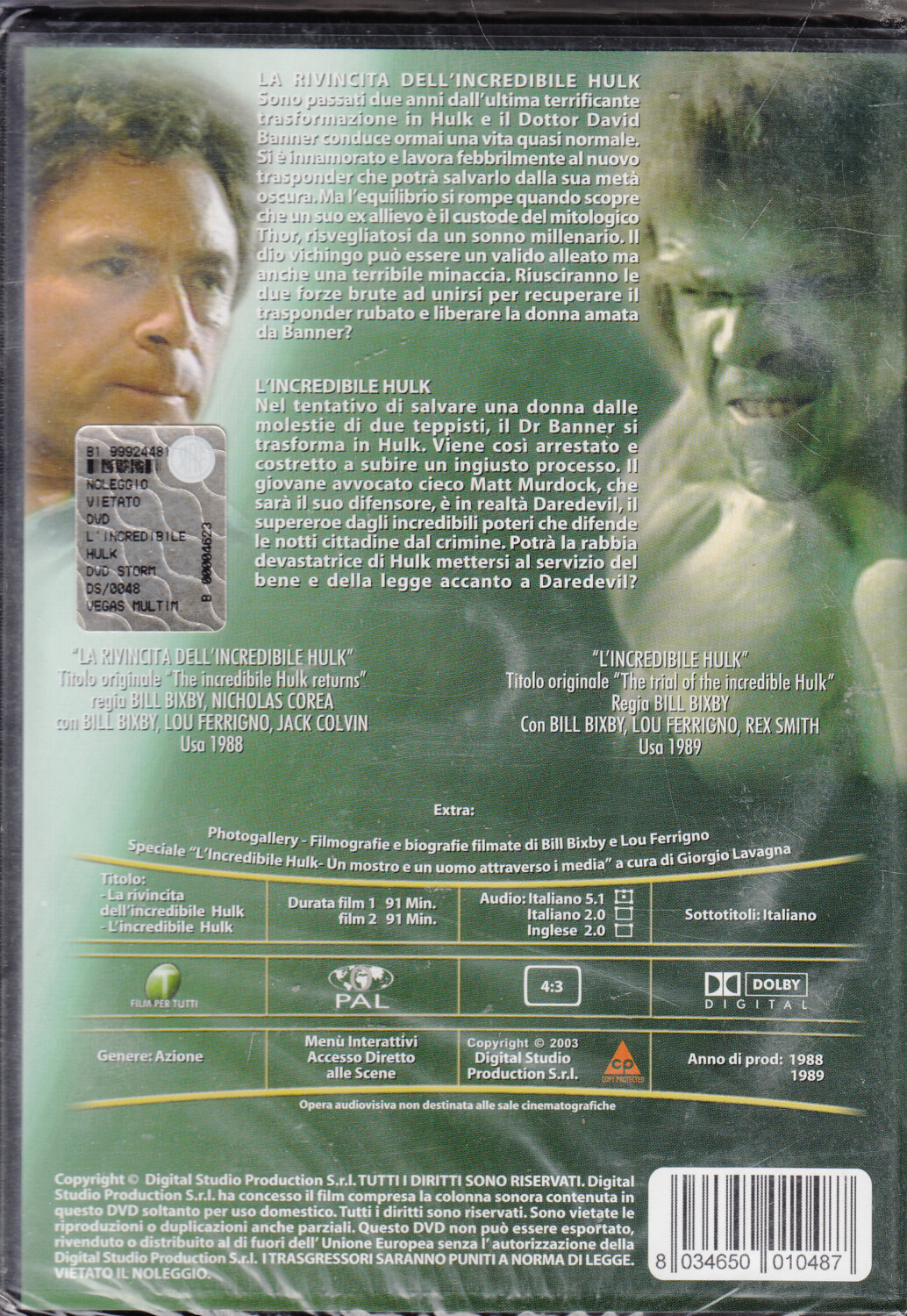 | Titolo: | L’incredibile Hulk (2 DVD) – DVD in Italiano |