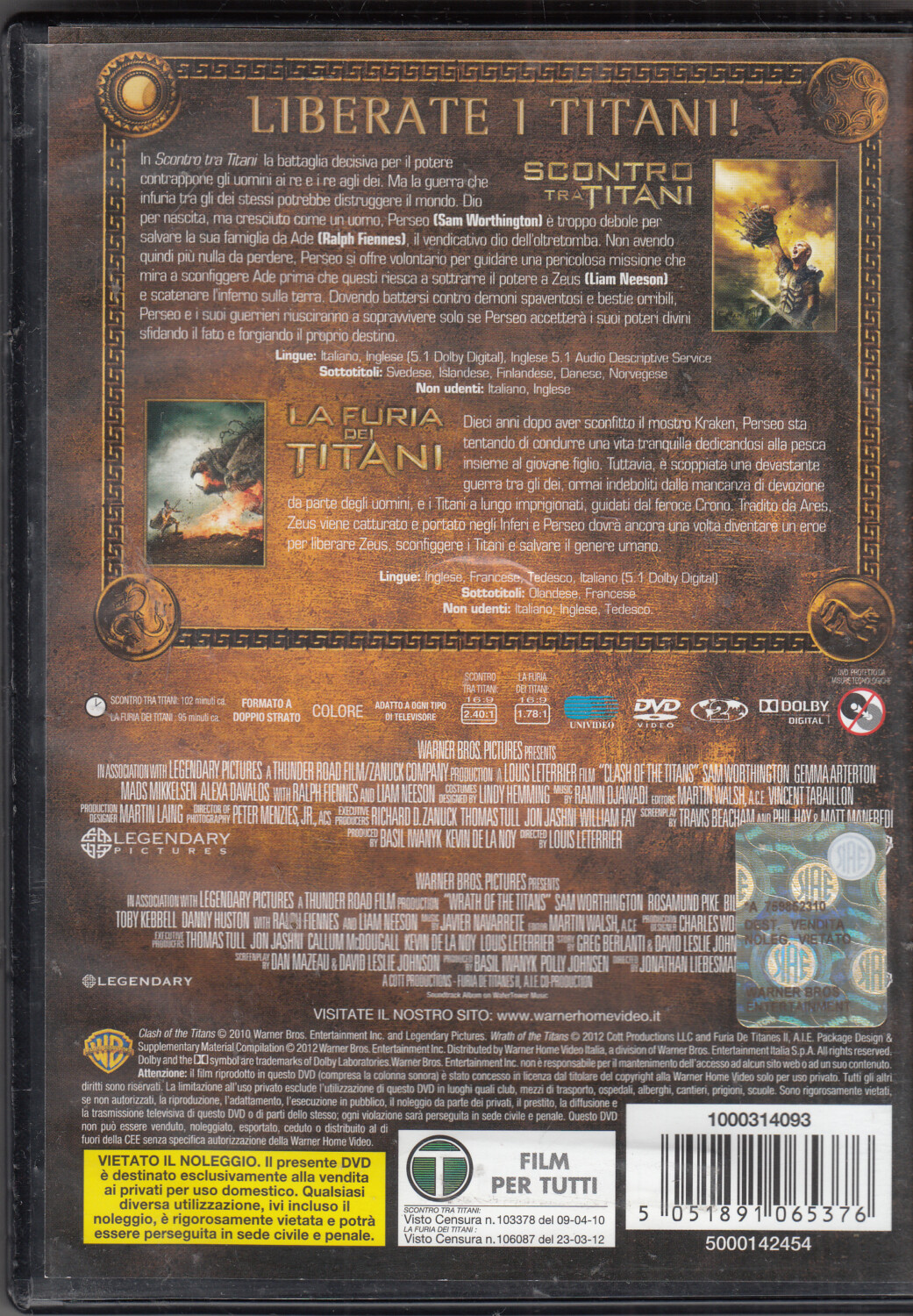 | Titolo: | Scontro tra Titani, La furia dei Titani. Titani DVD Collection con n. 2 DVD in Italiano ed. |
