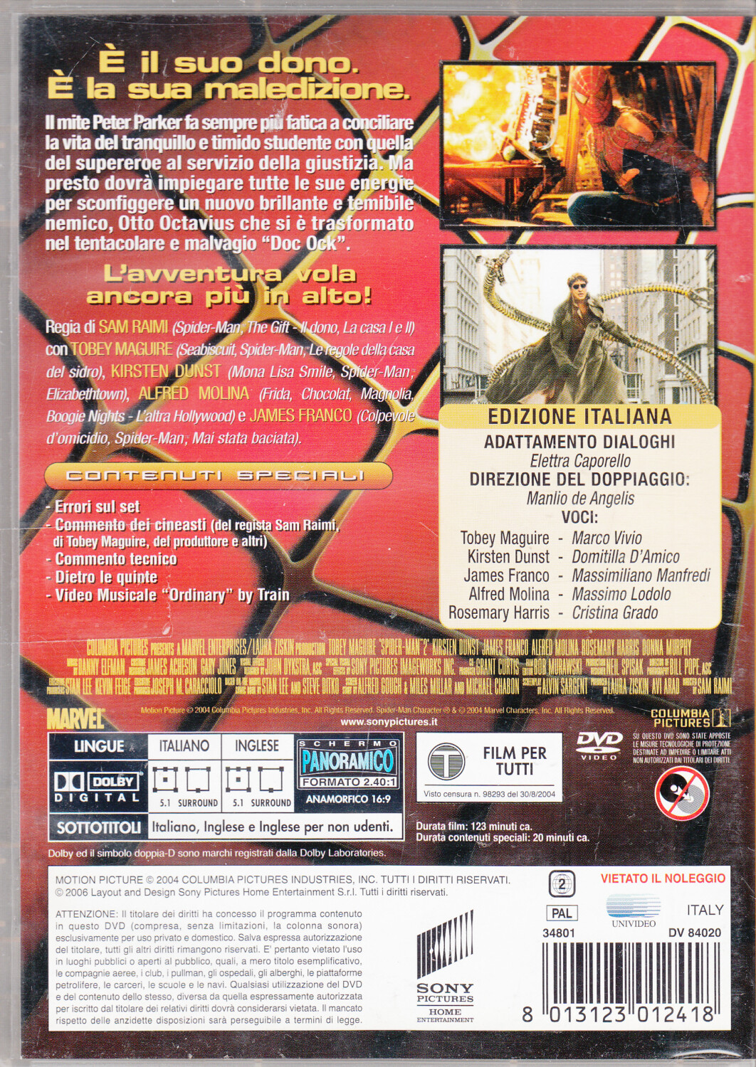 Spider-Man 2 con Tobey Maguire. DVD in Italiano