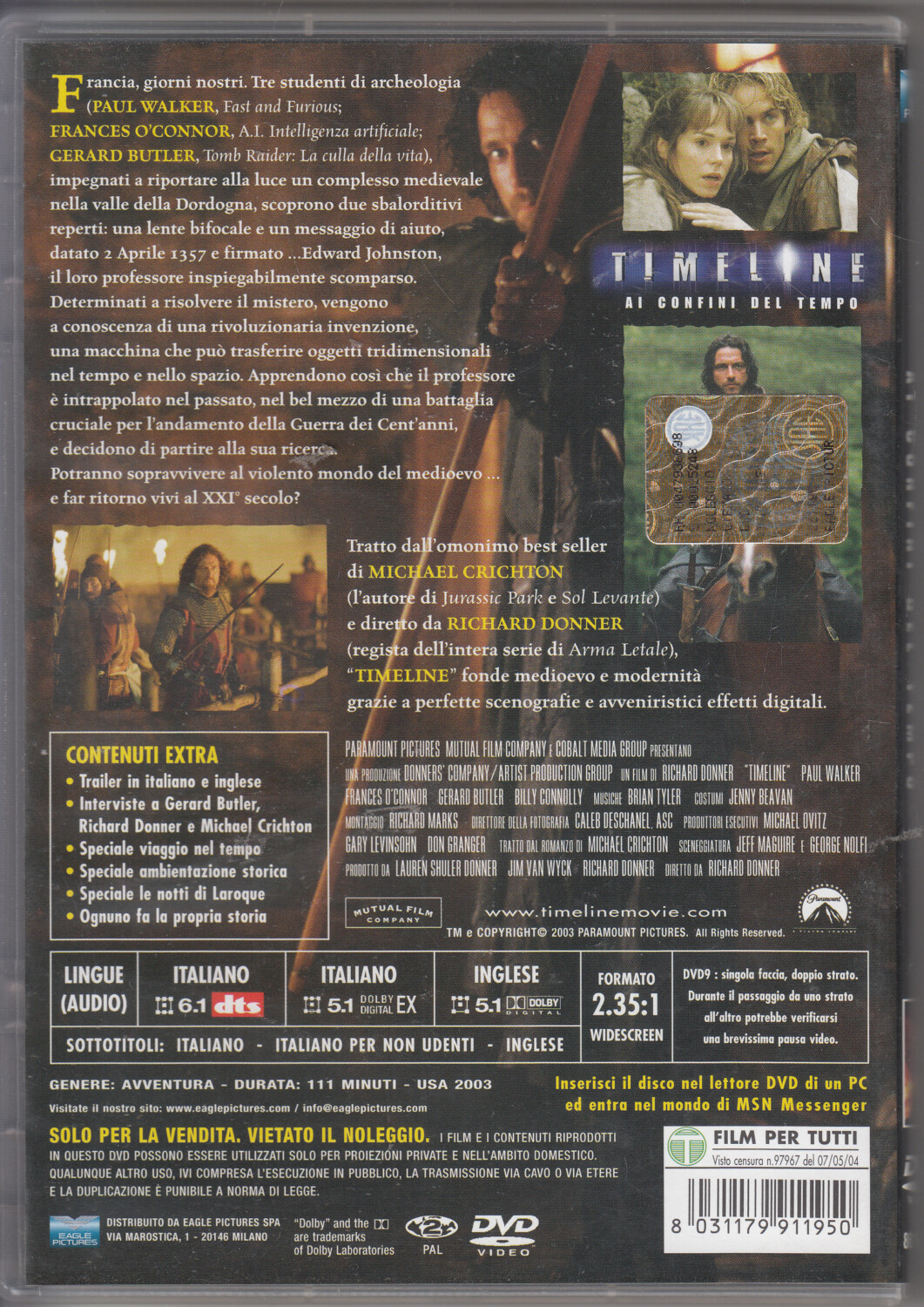 Timeline – Ai confini del tempo DVD in Italiano