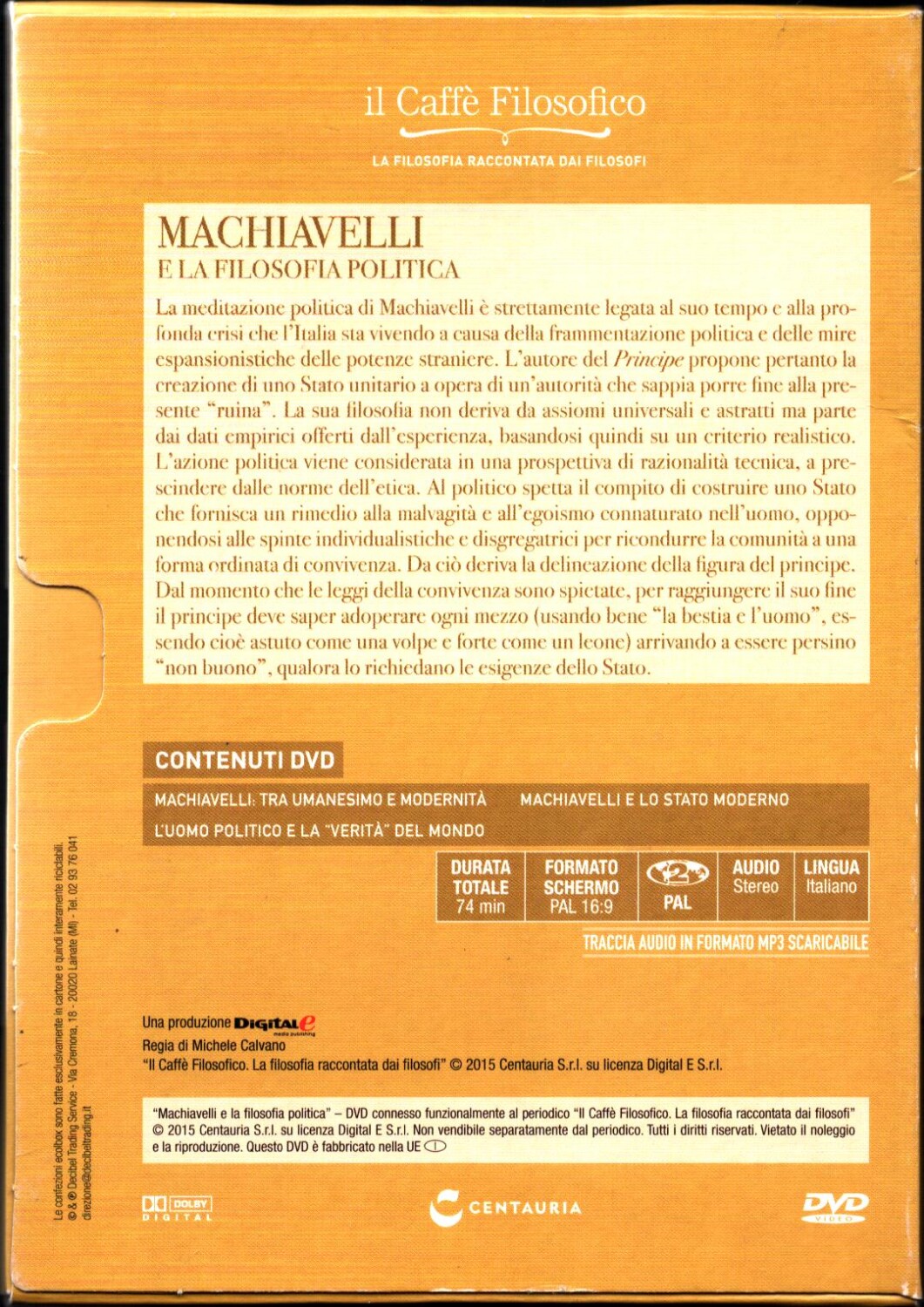 | Titolo: | Il Caffe’ Filosofico. Cacciari racconta Macchiavelli e la Filosofia Politica. DVD in Italiano. Versione da edicola |