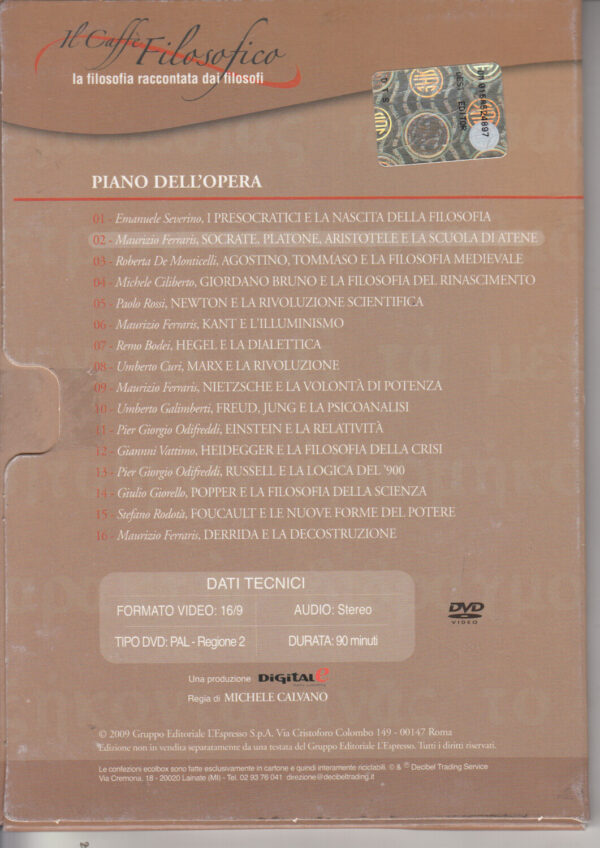 | Titolo: | Il Caffè Filosofico vol. 2- DVD Socrate Platone Aristotele la scuola di Atene (Maurizio Ferraris) – Versione da edicola – DVD in Italiano |