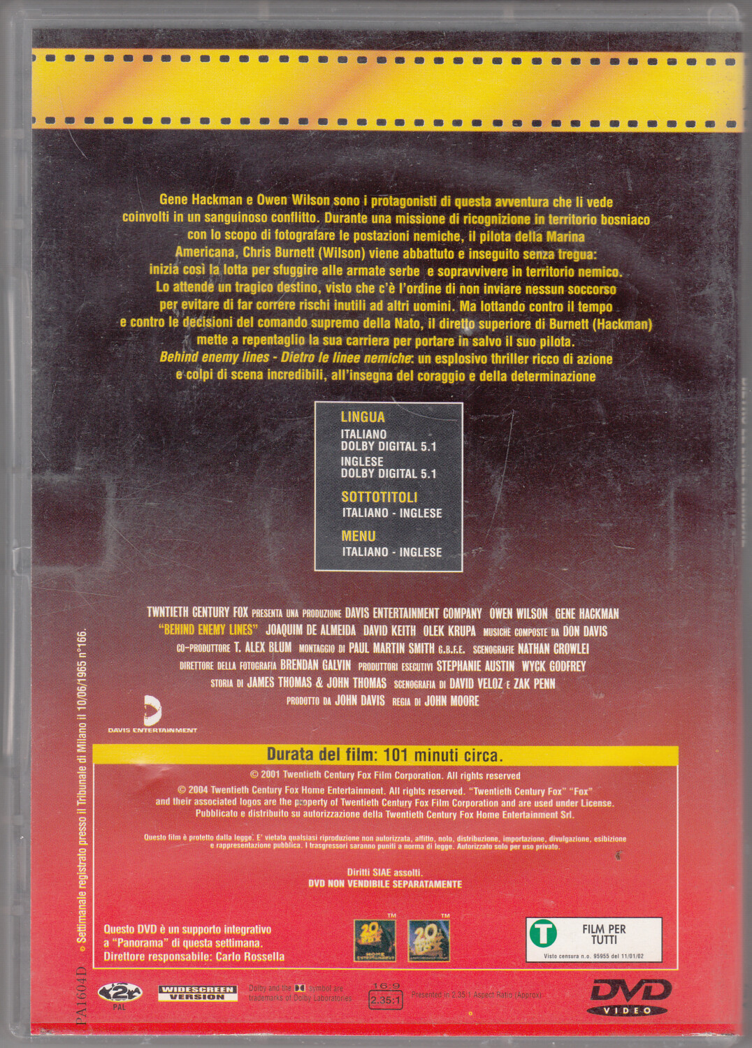 | Titolo: | Behind enemy lines. Dietro le linee nemiche Owen Wilson DVD in Italiano Versione da edicola |