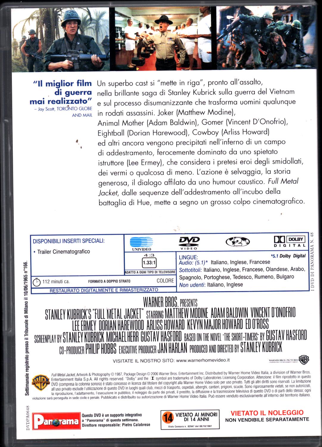 | Titolo: | Full metal jacket. Stanley Kubrick Collection n. 5. DVD in Italiano. Versione da edicola |