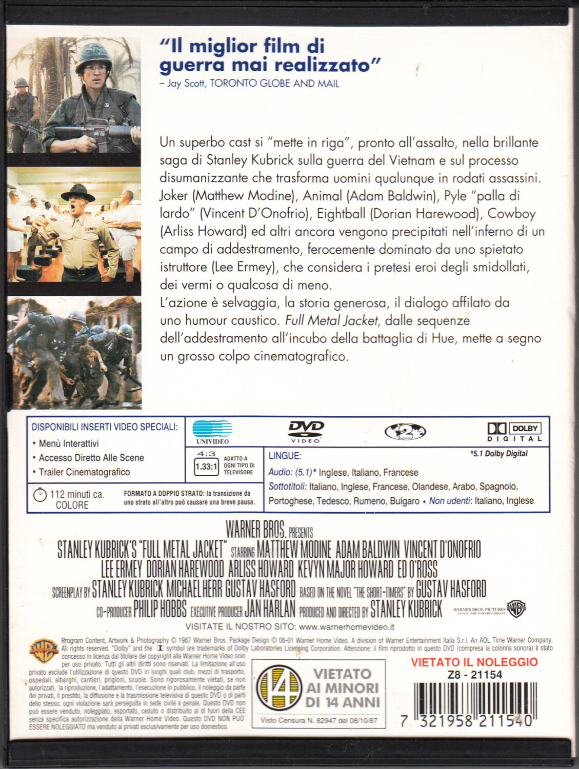 Full Metal Jacket – DVD Stanley Kubrick Collection – DVD in Italiano (Custodia Snapper)