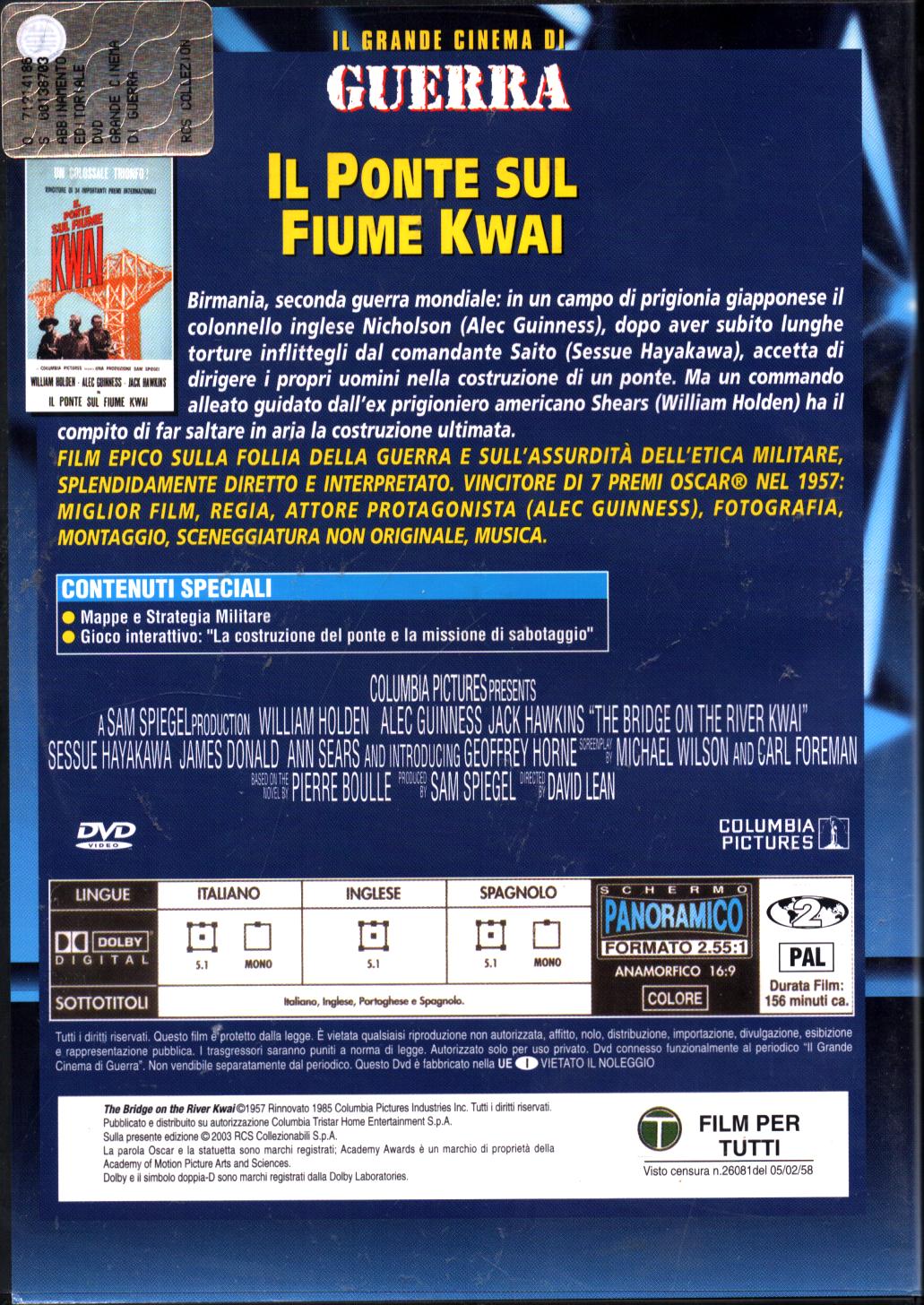 | Titolo: | Il ponte sul fiume Kwai. Il Grande Cinema di Guerra. DVD in italiano. Versione da edicola |