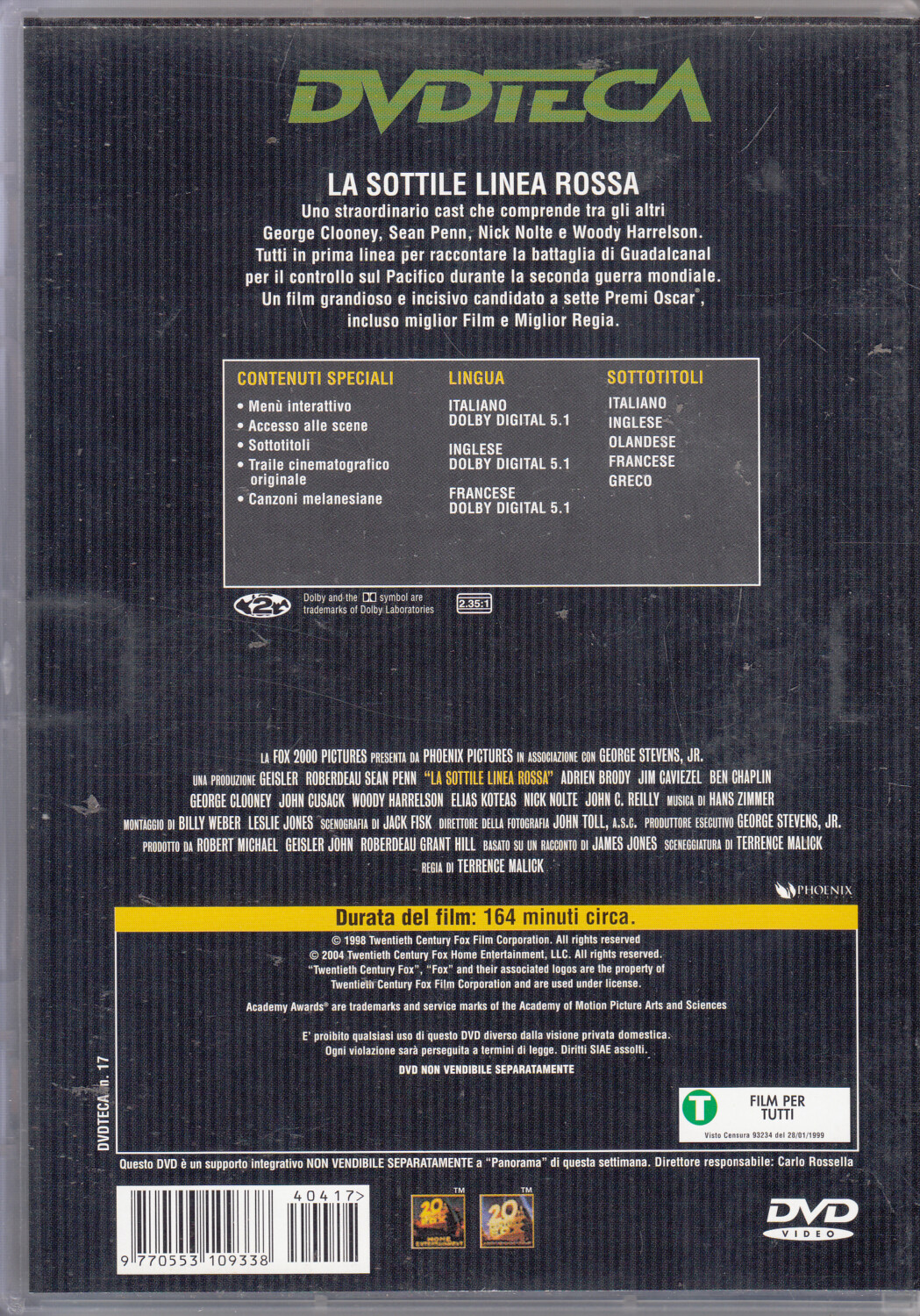 | Titolo: | La sottile linea rossa (DVDTECA) – Versione da edicola. DVD in Italiano |
