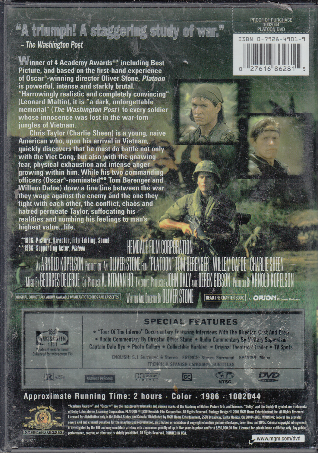 | Titolo: | Platoon un film di Oliver Stone. Special Edition. DVD Edizione Stati Uniti NTSC Regione 1, Lingua Inglese |
