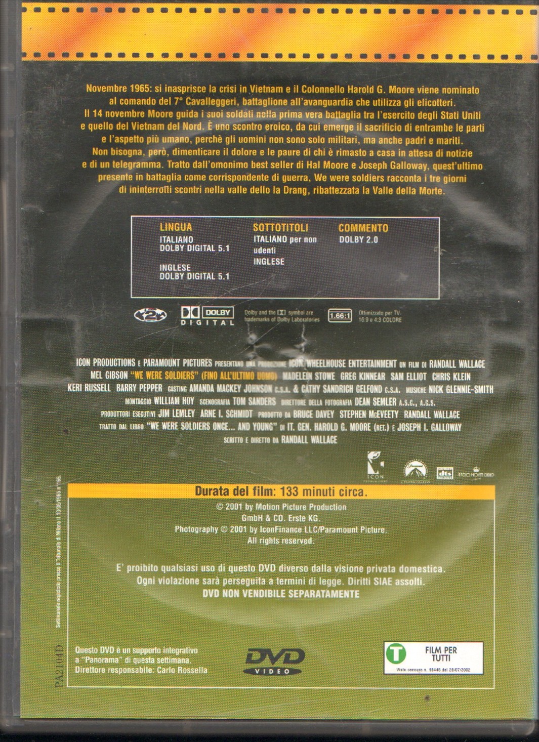 We were soldiers un film con Mel Gibson. Grandi Film di Panorama. DVD in italiano. Versione da edicola