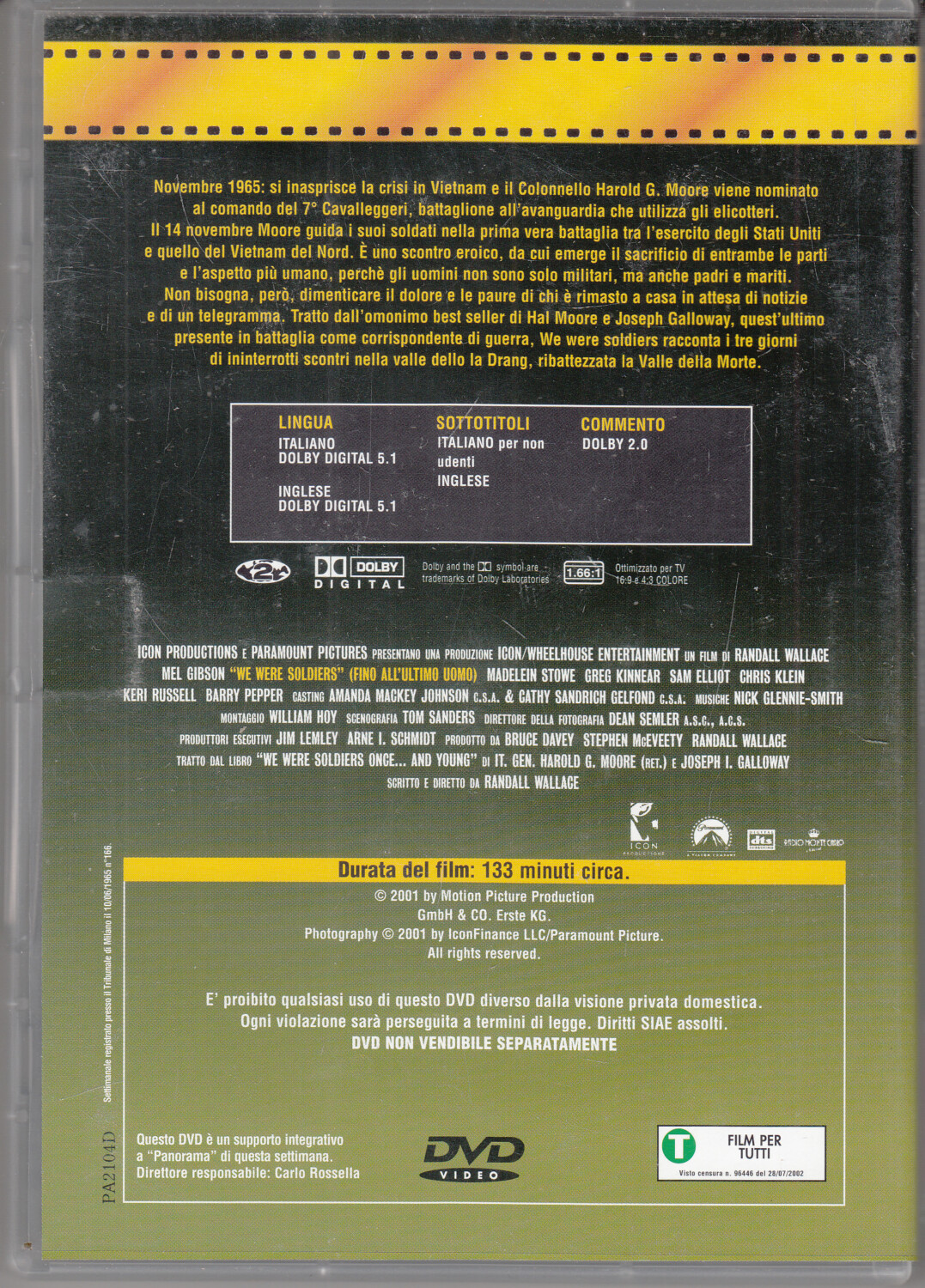 | Titolo: | We were soldiers. Grandi Film di Panorama. DVD in italiano. Versione da edicola |