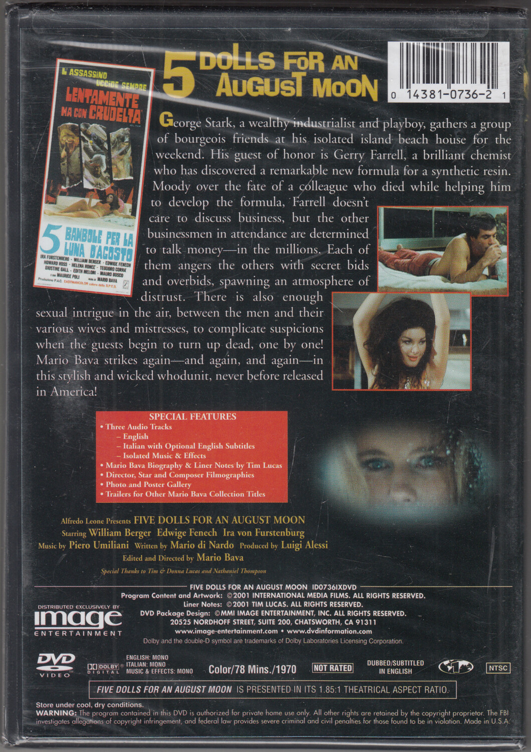 5 Dolls for An August Moon (5 bambole per la luna d’agosto). Mario Bava DVD (Edizione Stati Uniti NTSC, Lingua Italiano compreso)
