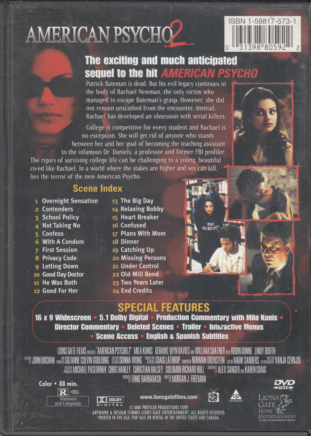 American Psycho 2. DVD Edizione Stati Uniti NTSC Regione 1, Lingua Inglese