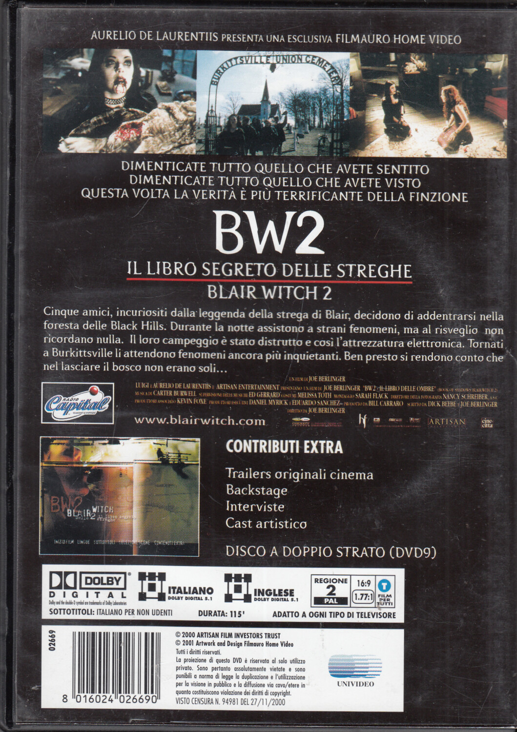 | Titolo: | BW2 – Il libro segreto delle streghe – Blair witch 2 DVD in Italiano Jeffrey Donovan |