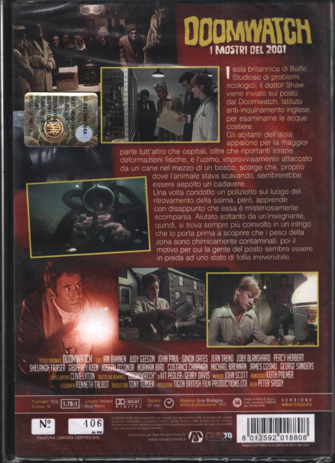 | Titolo: | Doomwatch – I mostri del 2001 (edizione limitata numerata) (versione rimasterizzata) DVD in Italiano |