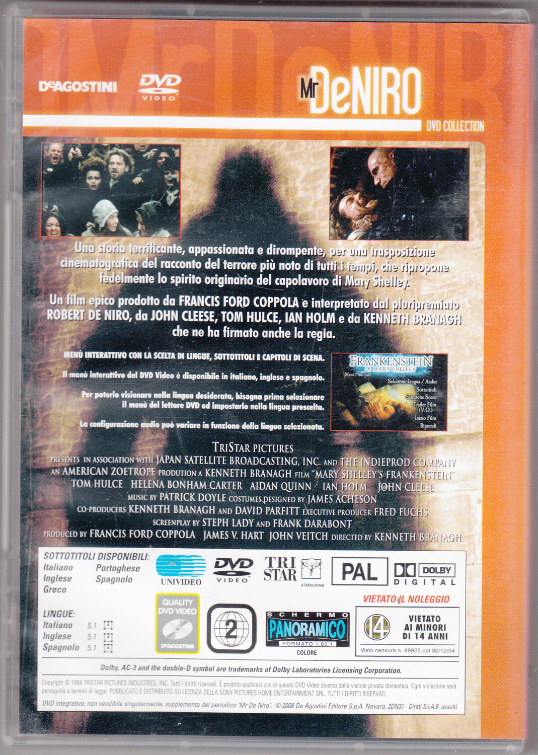Frankestein di Mary Shelley. Robert de Niro DVD in Italiano Versione da edicola