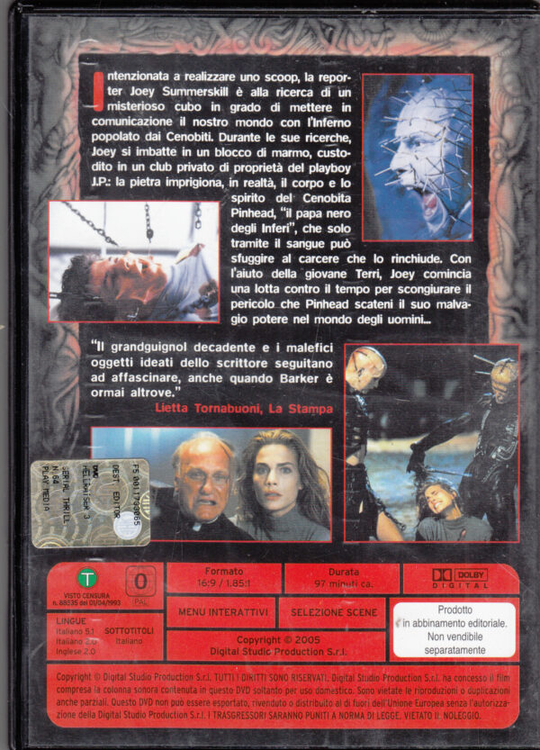| Titolo: | Hellraiser III – Inferno sulla città DVD in Italiano Versione da edicola |