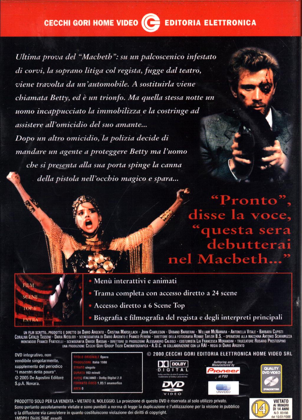 | Titolo: | Opera (Dario Argento) – DVD I Maestri Della Paura – Versione da edicola – DVD in Italiano |