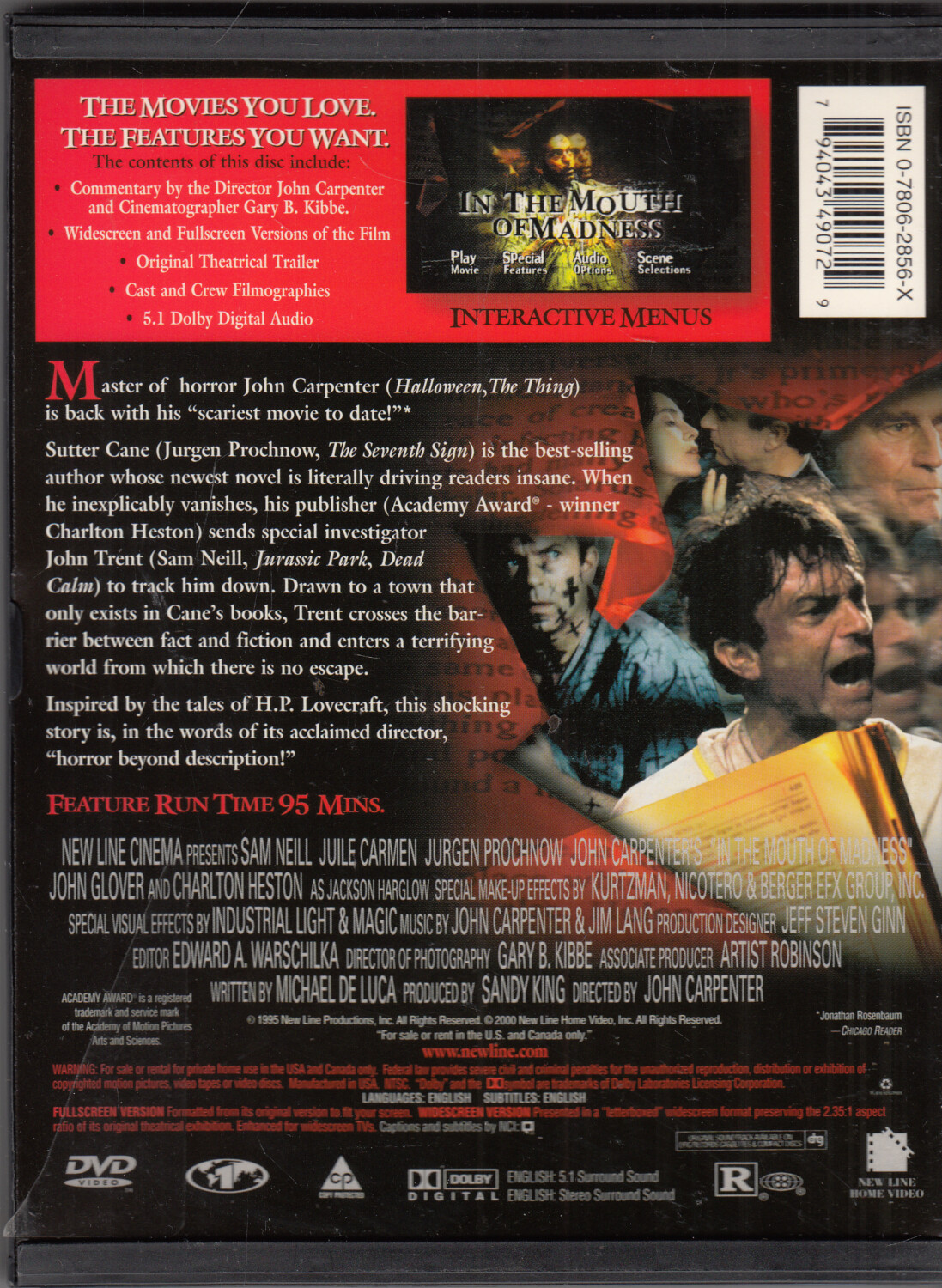 | Titolo: | In the mouth of madness con Sam Neill. DVD Edizione Stati Uniti NTSC Regione 1, Lingua Inglese. Custodia Snapper |