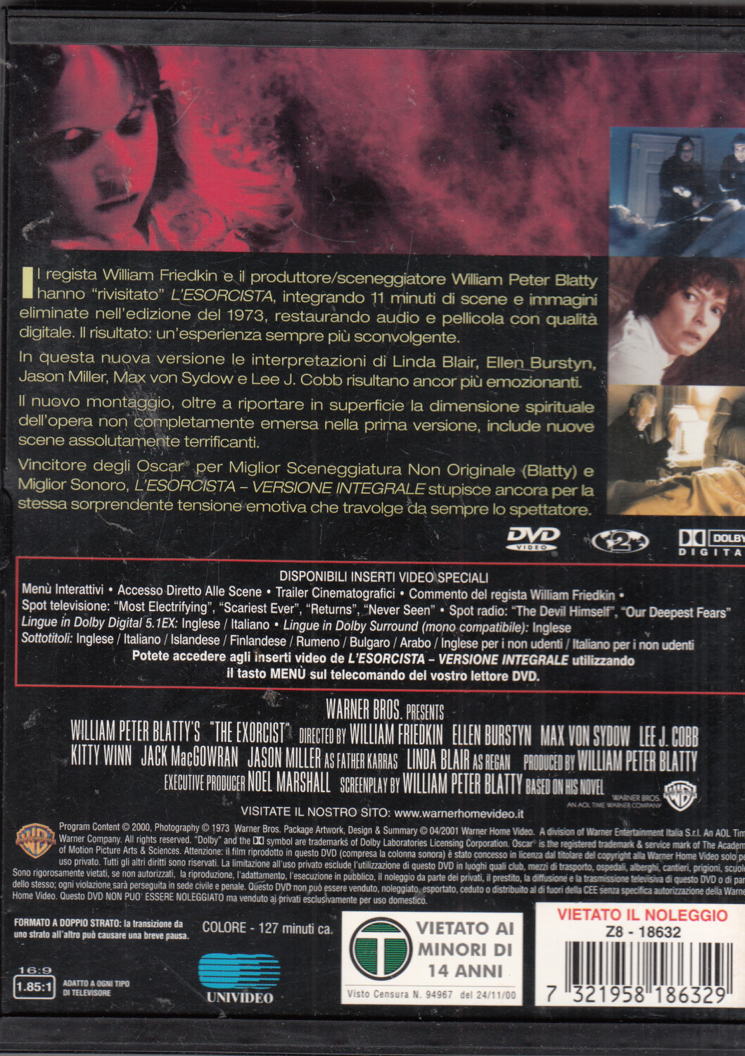 | Titolo: | L’esorcista. Versione Integrale. DVD in Italiano. Custodia Snapper |